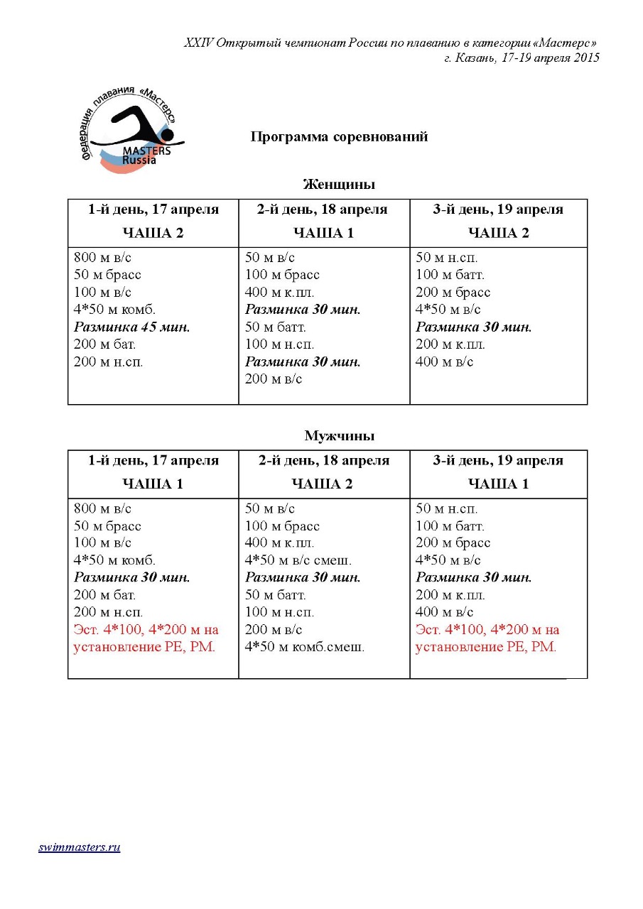 Программа соревнований ЧР - 2015 (деление по чашам)